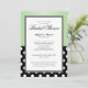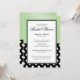 These sophisticated 2-sided Bridal Shower invitations are designed with pattern white polka dots over black and a green gradient. Choose your paper type. Linen would be a perfectly elegant choice for this design. Text is customisable and very descriptive and proper.