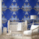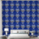 Royal Blue and Gold Arabesque Ornamental Pattern Wallpaper