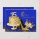 Royal blue and gold Quinceanera invitations with beautiful gold cake with diamond numbers, gold glitter high heel shoes and elegant diamond and gold princess tiara on a royal blue and gold background. You can easily customise these beautiful black and gold Quinceanera invitations for your event by simply adding your details in the font style and wording of your choice. This is a printed design with no real glitter, diamonds, bows, etc. You can also remove the blue background and change the background colour.