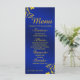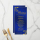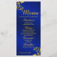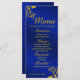 Royal blue and yellow golden floral embellished formal style themed wedding menus. Personalise these classl wedding menus with your own specific food and beverage details.