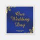 Elegant and simple royal blue and yellow golden floral embellished cocktail wedding napkins. Personalise with your own message.