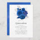 Vintage watercolor floral quinceanera invitations with trendy royal blue and silver designed to be quickly and easily customised to your event specifics.