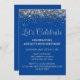 Royal Blue and Silver Glitter 50th Birthday Party Invitation