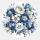 Royal Blue and Silver Glittery Peony Wedding Classic Round Sticker