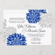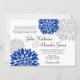 Royal Blue and Silver-Grey Floral Burst Wedding Invitation