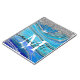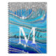 Chig, glam royal blue and silver faux glitter monogram notebook. Design features your name and initial on a geode blue, turquoise background.