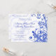 You can personalise the text on the elegant royal blue and white abstract floral wedding invitation. Royal blue and white is a popular wedding colour choice, making for a fresh and pretty invitation. To change the text, use the personalise option. For more extensive changes to the text, including texts to the font, font colour, font size, or text placement, use the customise it feature. With changes to the text, this invitation can also be used for other special occasions too. This invitation would look great on the metallic ice paper type as well.