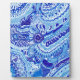 An intricate doodle hand drawn decorative art pattern by artist Nola Edsall of blue and white geometric pattern design that resembles a Ming oriental style pattern, inspired by Chinese art. This beautiful artwork is stylish and arty and would be perfect for any accessory.