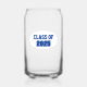 Trendy can glass for the school grad that features school colours of royal blue and white, with class year printed in bold, royal blue lettering on a white oval background. Great for graduation and class reunion parties. Edit class year with your own as desired.