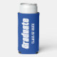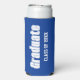 Trendy seltzer can cooler for a school or college graduation party that features school colours of royal blue and white along with class year printed in bold, white letters. Design printed on both sides of can cooler. Personalise your can cooler by editing class year as desired.