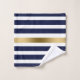 Modern royal blue and white geometric stripes with a gold in the middle