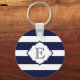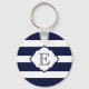 Royal Blue And White Stripes Geometric Pattern Key Ring