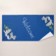 Royal Blue Background with beautiful White Flowers Bath Towel Set