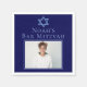 This royal blue Bar Mitzvah party paper napkin has a beautiful, artistic Star of David drawing at the top. Complete the custom decor with your personalised name and photo.
