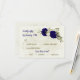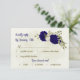 Beautiful romantic wedding response card featuring royal blue and beige flowers and some leaves .