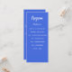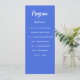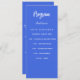Program and menu card. Personalise and add your name, date and the menu. Royal blue background, white text.