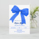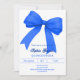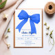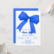 A white background, decorated with a large royal blue bow. Personalise and add a name and party details.
