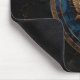 High-definition mouse pad featuring a 3D photo-realistic golden eagle on a shattered sapphire blue crystal shield. Premium 8k art with intricate gilded details and a subtle golden veins textured marble black background. Perfect for elite gaming setups and professional desk decor.