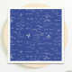Simple navy blue math napkins for graduations, teacher's parties, retirements, birthdays and more. The background has a series of mathematical formulas and equations in white creating a pattern. Illustrated and designed by Patricia Alvarez.