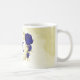Beautiful coffee mug featuring Royal blue flowers and gold leaves.