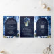 Royal Blue Floral Mason Jar QR Code Navy Wedding Tri-Fold Invitation