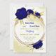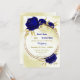 Royal blue flowers gold leaves wedding invitation