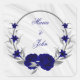 Beautiful royal blue flowers & silver grey leaves forming a beautiful gold wreath against marble background wedding square stickers