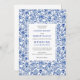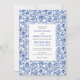 Make a lasting first impression with this French toile de Jouy wedding invitation, beautifully designed to showcase the best printing quality available on Zazzle. Featuring intricate floral patterns in rich navy, royal, dusty, and deep blue tones, this invitation blends timeless European elegance with refined modern presentation.
