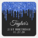 Royal Blue Glitter Drips on Black 21st Birthday Square Sticker