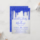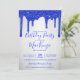 Royal Blue Glitter Drips Silver Metallic Birthday Invitation