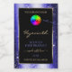 The design features a bright shimmering royal blue glitter frame with tiny glitzy stars on a plain black background.