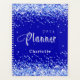 Royal blue background, decorated with faux glitter dust, sparkles. Personalize and add a year and name. White letters.
