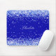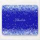 A chic royal blue background, decorated with light blue faux glitter, sparkles. Personalise and add a name written with a modern, elegant hand lettered style script.