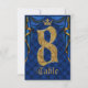 Royal Blue Gold Crown Wedding Table Number 8