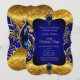 Royal Blue Gold Jewel Damask Birthday Party Invitation