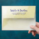 Beautiful wedding envelope featuring Royal blue gold watercolor