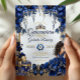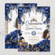 Royal Blue Golden Tiara Floral Quinceañera Invitation
