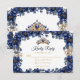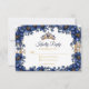 Royal Blue Golden Tiara Floral Quinceañera RSVP Card