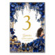 Royal Blue Golden Tiara Floral Quinceañera Table Number