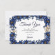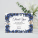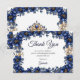 Royal Blue Golden Tiara Floral Quinceañera Thank You Card