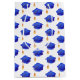Cute and simple graduation gift bag with a pattern of royal blue graduation caps with a gold tassel to complement your gift giving in his or her graduation. Illustrated and designed by Patricia Alvarez.