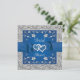 Keep with your royal blue and silver Love Hearts wedding theme with this romantic Bridal or Wedding Shower invitation with images of a pair of joined hearts overtop of a royal blue ribbon and bow image running across the centre of the invite. There is a simulated silver border around the edges of the card on the front and back sides. The shower details are printed in grey on a royal blue background on the back with a silver floral arch at the top. If you need any additional matching items, please email your request to niteowlstudio@gmail.com or use the Zazzle chat feature to get in touch.