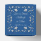 This personalised and romantic wedding favour box is perfect to use at your wedding reception, bridal shower, or rehearsal dinner. These royal blue and silver floral wedding favour boxes are sure to be a memorable hit with your guests with whatever sweet treat you put inside. The square favour box has a royal blue all-over background colour with a royal blue ribbon and joined hearts image across the front side and the back side with silver flowers on the top lid with customisable wording that says, "Love is Sweet" and also has the name of the bride and groom and the wedding date. The front and back sides have a simulated silver border around the square shape. Above the ribbon in light grey, the words, "Thank You!" are printed in the same script font that is used on all the matching pieces of the wedding set. Below the ribbon, the words, "Two Hearts, One Love" are printed in grey below the joined hearts image. If you need any other matching items, please email niteowlstudio@gmail.com and watch your spam/junk folders for my reply, or use the Zazzle chat feature to contact me.