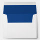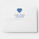 This customisable white and royal blue A7 size wedding invitation envelope matches the Royal Blue, White Heart of Love Wedding Invitation. This custom A7 envelope has a white background with an inner royal blue colour with a royal blue and silver filigree heart on the back flap above the names and address of the happy couple, making it sure to stand out in the mail.
