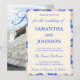 Royal Blue Ivory Floral Monogram Photo Wedding Invitation