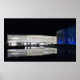 Blue Light illuminates the Nelson-Atkins Museum of Art in Kansas City. The original neoclassical museum building, opened in 1933, is on the right. The Bloch Building addition, to the left, opened in 2007. Both buildings are reflected in a pool in front. Underneath is a parking garage. The blue light is in honour of the Kansas City Royals' second baseball Worlds Series in a row. Fountains and buildings throughout the Kansas City area were lit with Royal Blue light. The group of figures on the right in front of the Bloch Building is a bronze sculpture called "Rush Hour" by George Segal.