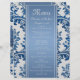 Royal blue leafy damask pattern Monogrammed Wedding Dinner Menu Flyer. Please note, Ribbon is the printed image. You can move ribbon and round frame up and down or simply remove them.