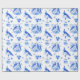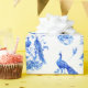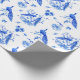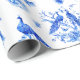 Royal blue peacock chinoiserie pattern gift wrap, blue and white.