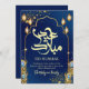 Royal Blue Peacock Feather and Gold Eid Mubarak Holiday Card