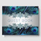 Peacock wedding guest book with beautiful silver diamond text banner on an elegant purple and blue peacock feather background. This peacock guest book is easily customised for your event by simply adding the text of your choice in the font style you prefer. This is a printed design with no real jewels, foil, feathers, etc.